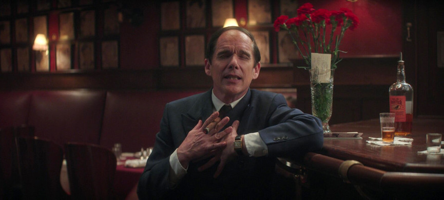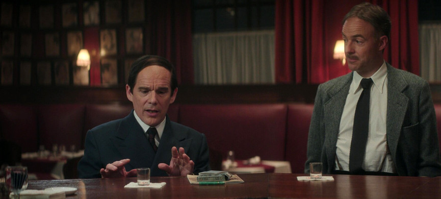 Но впереди у Харта две другие важные встречи. Звезда вечера, его бывший соавтор Ричард Роджерс, в память о прошлом сотрудничестве уделяет поэту несколько минут. Роль успешного композитора исполнил Эндрю Скотт, который вместе с Итаном Хоуком прекрасно разыграл сцену их разговора на лестнице. Роджерс стремится подняться наверх, а Харт все пытается не столько задержать его, а просто побыть рядом еще несколько мгновений.