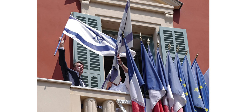 Эти флаги на здании мэрии провисели почти два года, став причиной конфликта с префектом, требовавшим от имени государства их убрать. Эстрози отказывался подчиняться этим требованиям. Когда в июне 2025 года административный суд все же обязал его снять израильские флаги с фасада мэрии, Эстрози ответил мощным символическим маневром. Он подчинился суду, но мгновенно закрыл фасад гигантским баннером с лицами 48 заложников, удерживаемых на тот момент в Газе, и заявил, что «пока жива угроза еврейскому народу, Ницца не будет хранить нейтралитет».
