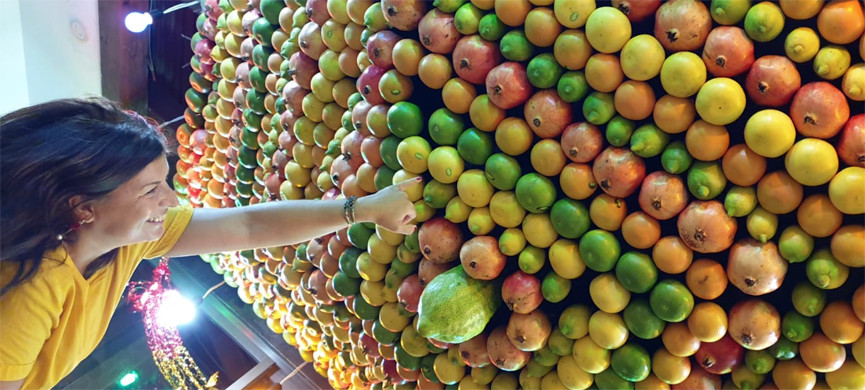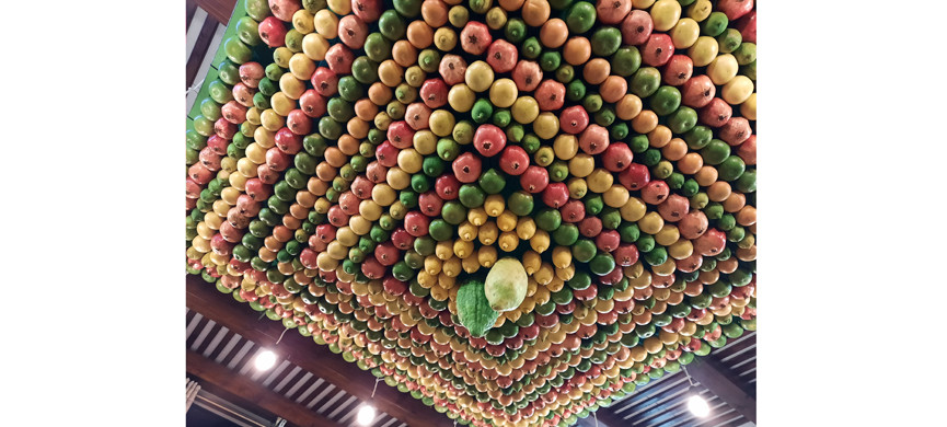 Квадратный каркас размером в среднем три на три метра закрепляется под потолком в гостиной и висит там круглый год. За несколько дней до праздника на него крепят сеть из проволоки и прочных веревок. На эти веревки нанизывают фрукты, располагают рядами: сначала зеленые яблоки, потом желтые лимоны, следом – красные гранаты и, наконец, этроги. Фруктовую сукку дополнительно украшают гирляндами и фонариками – в итоге получается нечто среднее между рыночном прилавком и новогодней елкой.
