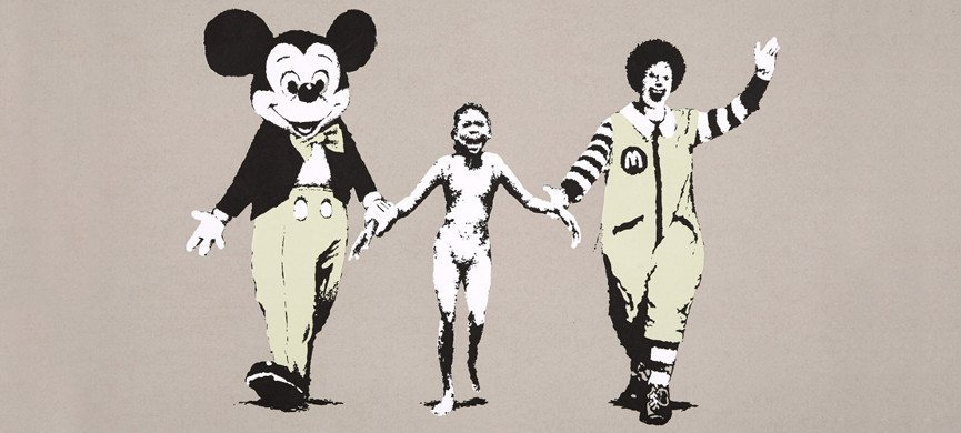 Казалось, что в нашем постмодернистском мире подобных вопросов быть уже не должно. Всё современное искусство, начиная с поп-арта 60-х годов, построено на умышленном сдвиге контекстов. Бэнкси не стеснялся использовать Микки-Мауса, когда писал граффити о войнах в странах третьего мира. На его рисунке радостные Микки и клоун Рональд Макдональд ведут под руки плачущую вьетнамскую девочку – Бэнкси взял её изображение с фотографии времен Вьетнамской войны. А Тарантино и вовсе сжёг Гитлера из огнемета в фильме «Бесславные ублюдки».