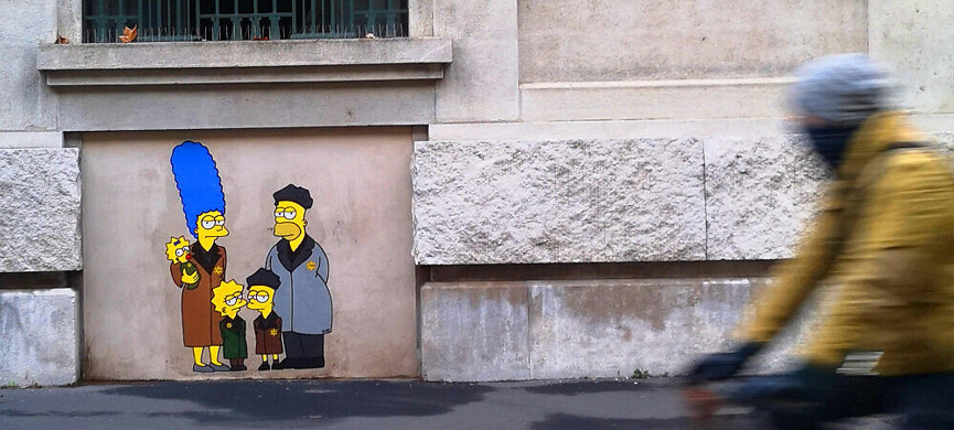 На одном из граффити Гомер, Мардж и остальные Симпсоны ждут поезда в концлагерь, а к их одежде приколоты желтые звезды с надписью «еврей». На соседнем рисунке – исхудавшие Симпсоны уже одеты в лагерные робы. Граффити появились недалеко от печально известной платформы № 21 на вокзале в Милане, откуда в 1943 году депортировали около 1200 евреев.