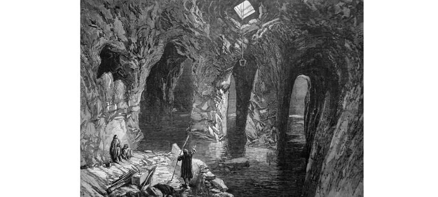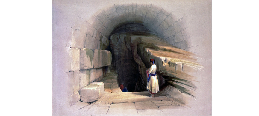 Под поверхностью Храмовой горы спрятано множество полостей для сбора дождевой воды. Некоторые из них, например, изображенные на картине Симпсона – громадные и весьма древние. Одни, видимо, относятся к эпохе Первого Храма, а другие помладше – времён восстановления Второго Храма. Поскольку с конца XIX века ученым туда доступа практически нет, точно их возраст узнать сложно. При этом надо учитывать, что одна и та же яма могла быть высечена три тысячи лет назад, но с тех пор многократно расширена.