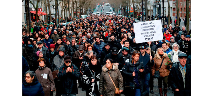 Инициатором марша прощания с Мирей Кнолль стал Еврейский совет Франции, но помимо обязательных на таком действе представителей еврейских организаций, в нем пожелали принять участие множество публичных персон и политиков, в том числе лидер ультраправых Марин Ле Пен, известная своей националистической риторикой, и один из лидеров ультралевых – председатель «Несломленной Франции» Жан-Люк Меланшон, прославившийся бойкотом товаров из Израиля и отрицательным отношением к проводимой еврейским государством политике.