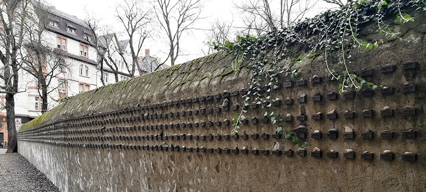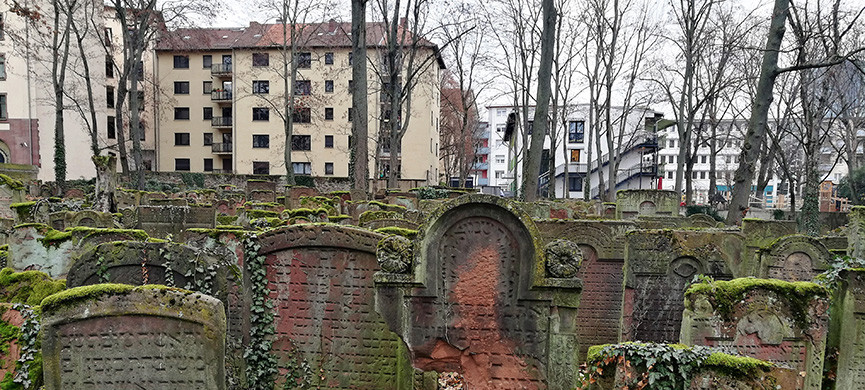 Рядом с музеем – старое еврейское кладбище. На нем до 1828 года хоронили умерших обитателей гетто. Cамый старый из сохранившихся могильных камней датируется 1272 годом. А 23 декабря 1942 года бургомистр Франкфурта Фридрих Кребс выступил перед членами городского совета со следующим заявлением: «Старое еврейское кладбище на Доминеканерплатц нужно расчистить как можно быстрее и приспособить под свалку на случай сильного повреждения зданий в результате вражеских бомбардировок. Стоимость устранения примерно 7000 надгробных плит и части деревьев составляет примерно 35 000 рейхсмарок».