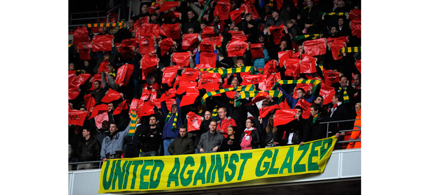 Отношения с болельщиками у американского бизнесмена Малкольма Глейзера, методично скупившего все акции «Манчестер Юнайтед» в 2003–2005 годах, не заладились с самого начала. Во многом этому способствовал сам характер покупки клуба. Дело в том, что до Глейзера клуб представлял собой открытое акционерное общество, публичную компанию, акции которой свободно торговались на фондовом рынке еще с 1990 года. Вероятность выкупа клуба одним инвестором была небольшой – спасала высокая стоимость акций. Но эту преграду вдруг легко взял Глейзер. Причем не только имеющимися у него в избытке деньгами – большую часть денег на покупку он вообще занял, но и умелыми уговорами.