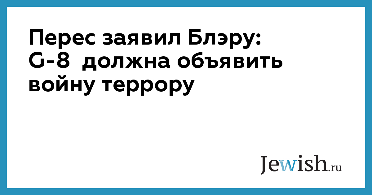 Министр иностранных дел Израиля Шимон Перес вчера постарался убедить премьер-министра Великобритании Тони Блэра повлиять на лидеров наиболее развитых стран мира, собирающихся в Генуе на свой ежегодный саммит на этой неделе, с тем, чтобы они выступили единым фронтом в бескомпромиссной борьбе с международным терроризмом.