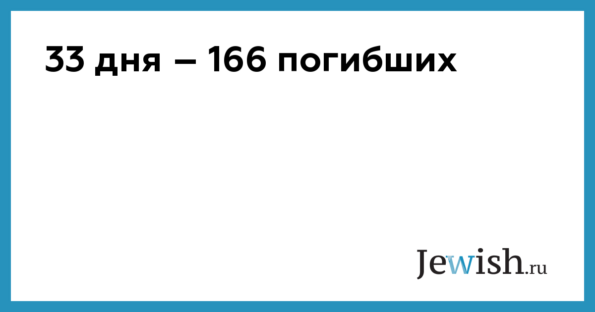 Сегодня утром, через 33 дня после начала военных действий на севере Израиля и в Ливане, вступило в силу соглашение о прекращении огня. За месяц ракетных обстрелов «Хизбаллой» израильских городов и боевых действий израильской армии на юге Ливана в тылу и на передовой погибло 166 израильтян.