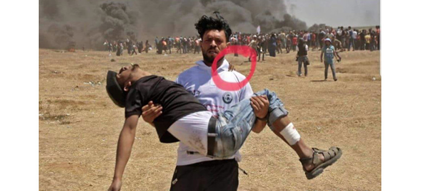 Иран, кстати, возобновил контакты с движением ХАМАС совсем недавно – после паузы, вызванной первоначальным отказом группировки поддержать власть Башара Асада в Сирии. Иранцы всегда требуют беспрекословного подчинения в обмен на свою финансовую и военную поддержку. ХАМАС, отрезанный от других источников финансирования, сдался наконец во власть Ирана. Но Иран также требует от своих реципиентов взрывов, атак, крови и, главное, красивых картинок. А их во время «Марша возвращения» было много. В интернете, как всегда это в таких случаях и бывает, появилось множество фотофальсификаций, разоблачить которые можно сходу и невооруженным глазом. Вот на этой фотографии, например, «убитый» держится рукой за плечо товарища.