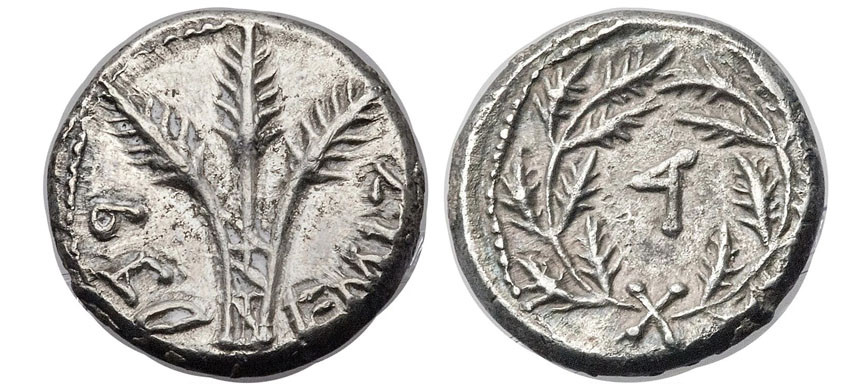 Серебряную монету номиналом в четверть шекеля относят к 69 году нашей эры. Ее отчеканили в четвертый год Первой Иудейской войны – восстания евреев против римского владычества, которое длилось семь лет. Оно завершилось разрушением Второго Храма и гибелью около 600 тысяч человек – такова оценка римского историка Иосифа Флавия, первым описавшего этот кровопролитный конфликт. Из них больше 110 тысяч евреев погибли при осаде Иерусалима в 70 году – всего лишь год спустя после чеканки монеты.