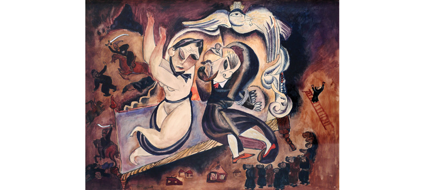 Уникальность выставки в том, что она охватывает все сферы жизни за раз. Война смешивается с политикой, политика с искусством, искусство с религией. Реальные документы тех лет сменяются картинами Роберта Фалька и Лисицкого, а те, в свою очередь, предвыборными плакатами еврейских партий. Величественный портрет вождя пролетариата Ленина в исполнении Исаака Бродского соседствует c абстрактным «Погромом» кисти Рыбака.