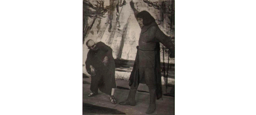 Высокопарный текст «Строителя» невероятно труден для переноса на сцену. Ощущение, что Михоэлс переводил в уме с идиша на русский. Возможно, так оно и было. Но он явно был «в теме» передовых интеллектуальных течений своего времени. Совершенно очевидно, что на него повлияли пьеса Ибсена «Строитель Сольнес», где есть и башня, и гибель, и «Анатэма» Леонида Андреева, где Б-г и дьявол заключают пари, придет ли герой к свету.