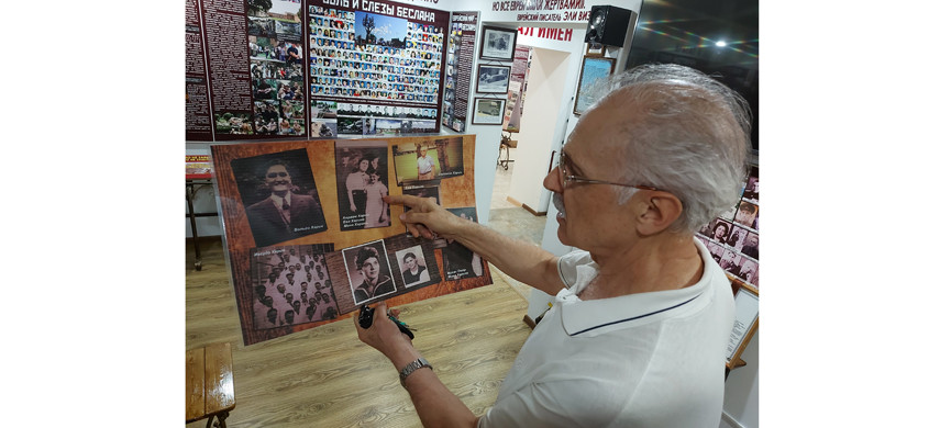 Во дворе музея – памятник воинам-евреям Владикавказа, погибшим при обороне города и павшим на фронтах Великой Отечественной войны. Внутри – стенд «Праведники мира» и портретная галерея «Гордимся и помним», там хранятся фотографии выдающихся евреев, внесших вклад в развитие Северной Осетии. Харин рассказывает, что именно евреи открывали во Владикавказе первые аптеки, среди них – аптекарские магазины Штебера, Мейера, Левандовского, Зейделя, Маха. У хирурга Константина Исаковича в городе была своя лечебница и электросветоводолечебный институт. Врач-гинеколог Раиса Нитабух открыла область плаценты, так и названную – «слой Нитабух».