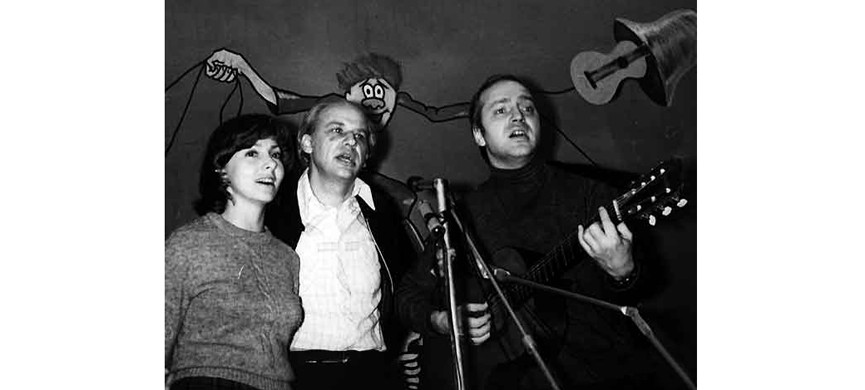 Как раз в то время в МГУ зарождалось движение авторской песни, и Сухарев был одним из тех, кто встал у ее истоков. Это случилось, когда он уже учился в аспирантуре – первыми пробами барда стали песни для университетских театральных постановок. Тогда между факультетами шло негласное состязание в художественной самодеятельности: «Маленькие стихи были никому не нужны, мы сразу сочиняли крупные формы, чтобы не проиграть другим факультетам».