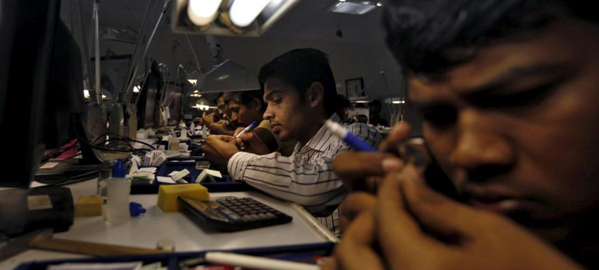 За таких невзыскательных покупателей по большей части конкурируют лаборатории, выращивающие искусственные бриллианты. Цены на искусственные камни, естественно, значительно ниже, а отличит их от натуральных лишь наметанный глаз профессионала – и то не сразу. Неудивительно, что спрос на бриллианты на традиционных рынках сократился, а цены начали падать. Где интерес к бриллиантам резко возрос, так это в странах с новой состоятельной прослойкой – в Китае, в Средней Азии, в России и, в первую очередь, в Индии. В Индии возникли многочисленные шлифовальные мастерские, использующие неограниченный запас практически бесплатной рабочей силы. При этом местные власти значительно способствовали развитию индустрии в стране.