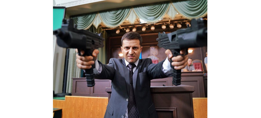 В своей стране Зеленский известен не только «Вечерним кварталом», но и сериалом «Сваты», который собирал аудиторию на протяжении шести сезонов, а также «Вечерним Киевом» и «Лигой смеха», но за пределами Украины его знают, прежде всего, по сериалу «Слуга народа». Простой учитель истории благодаря набравшему популярности ролику в интернете в один прекрасный день оказался в кресле президента Украины, и следующие два сезона президент Голобородько в исполнении Зеленского пытается, как говорят в народе, «ответить за базар». То есть выполнить главное своё предвыборное обещание: чтобы президент жил как простой учитель, а простой учитель – как президент. Роли в сериале сыграл весь «Квартал 95», а зрители телеканала «1+1» к концу второго сезона тоже оказались едва ли не единодушны в желании выдвинуть Голобородько в президенты.