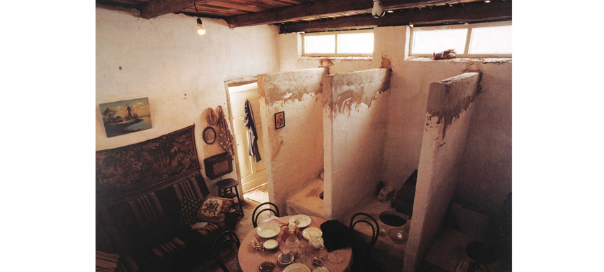 Иногда эту историю трактуют как «мать Кабакова жила в туалете», но он сам всегда поправляет: нет, не совсем. Подсобка действительно когда-то была туалетом, но потом его переделали, убрали унитазы и превратили в кладовку. «Речь не идет о каком-то грязном туалете, – объяснял Кабаков в “Диалогах” с Гройсом. – Это был традиционный школьный туалет для мальчиков из пяти-шести отделений, преображенных в полки для хранения белья».