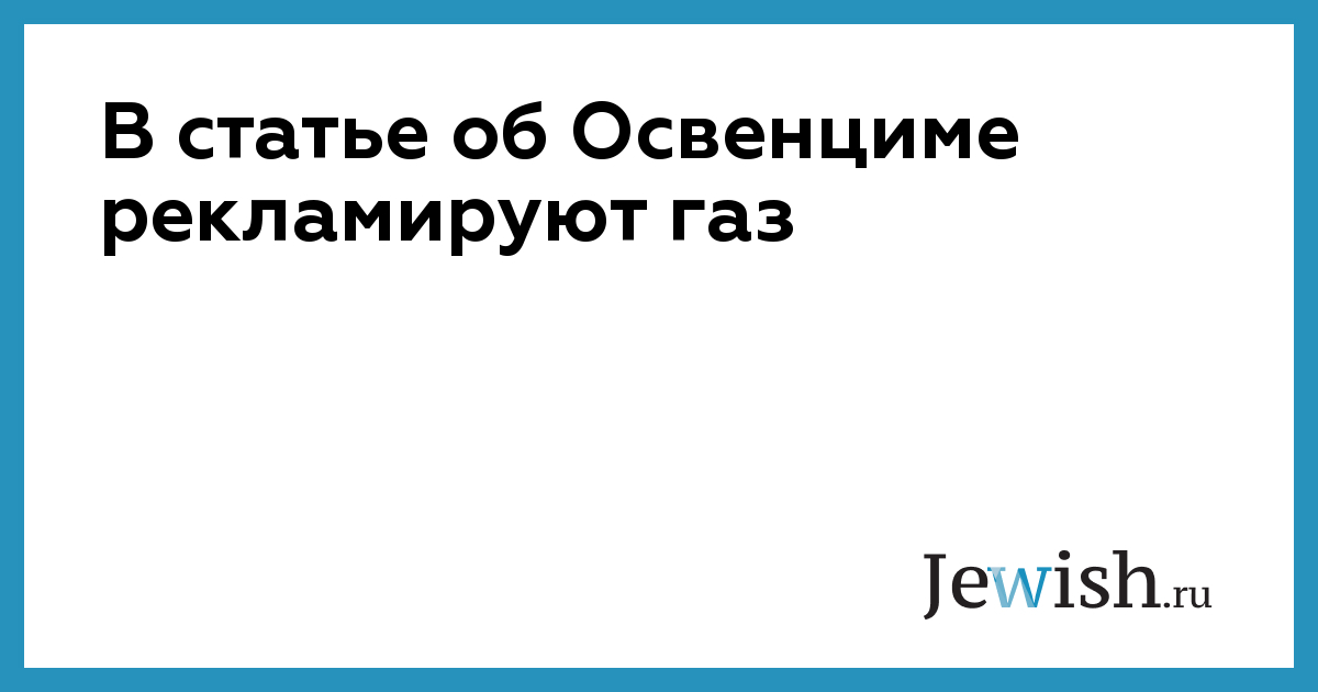 На днях, сообщает EJP, региональной немецкой газете «Landeszeitung Lueneburg» пришлось извиниться за публикацию рекламы «газа завтрашнего дня» на одной странице со статьей об уничтожении цыган в Освенциме.