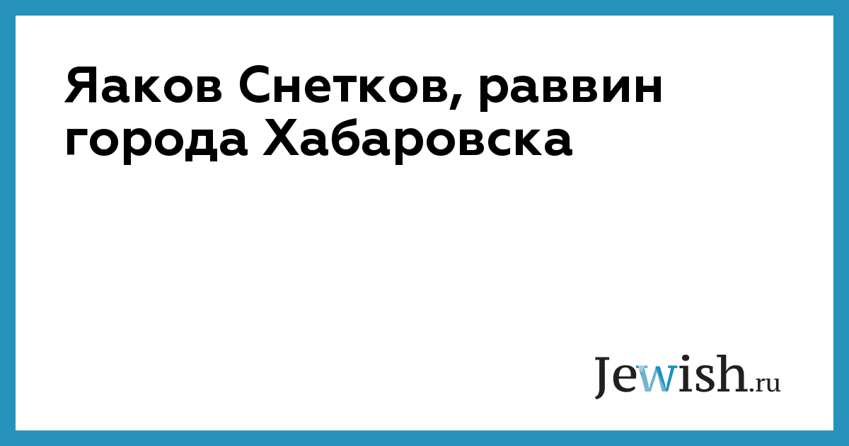 Реб Яков Снетков — раввин города Хабаровска — столицы самого восточного федерального округа Российской Федерации. Его путь Тшувы так же уникален и также поучителен, как и истории всех наших героев. Итак, наша беседа о том, как происходило возвращение к еврейской традиции еще одного ее отдельно взятого носителя.