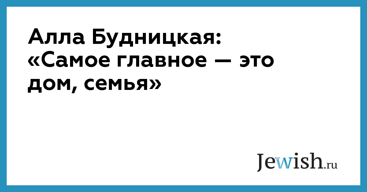 "Самое главное — это дом, семья, — убеждена Алла Будницкая. - К сожалению, сейчас в мире происходит очень много неприятностей. Люди срывают свой гнев на семье. Необходимо сохранять в своем жилище благоприятную атмосферу. Ни в коем случае не следует срывать злость на близких... Единственное, что, как мне кажется, необходимо хранить, так это дом. Мой дом — моя крепость".