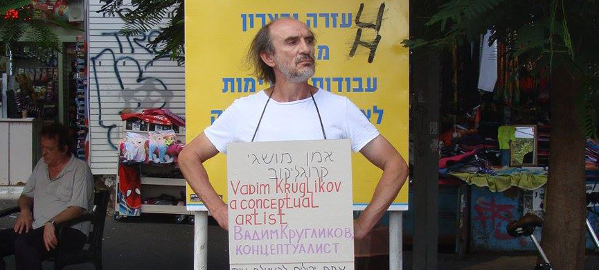 Вадим, вот вы, уважаемый художник, переехали в Израиль. И вдруг надели штаны и майку, взяли сетку, положили туда молоко и хлеб и вышли в центр города, чтобы там просто постоять. Зачем?