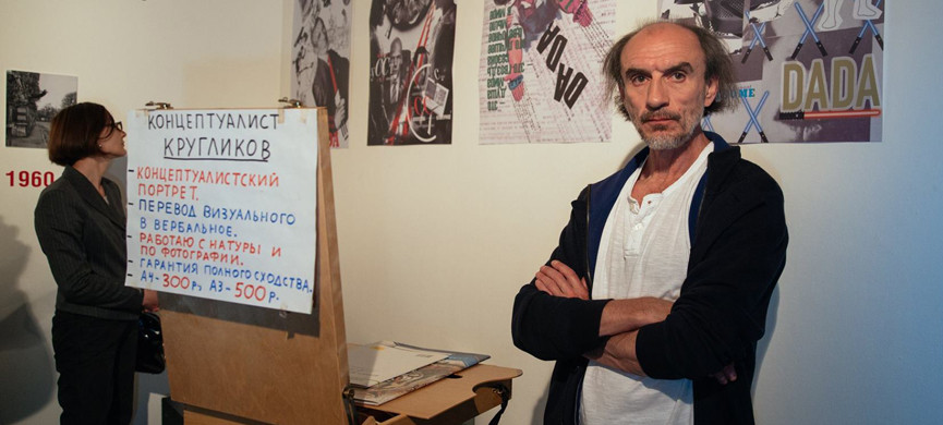 – Угрюмый мужик выходит в магазин, а потом решает постоять на площади и немного подзаработать. Для этого у него на груди табличка на трех языках: «Со мной можно сфотографироваться за 50 шекелей». Подзаработать, естественно, не удалось. Целью этого персонального высказывания было не заработать, а продемонстрировать поведение некого персонажа, от имени которого я создаю свои работы в данной конкретной ситуации. Мой персонаж – дурак, неудачник, он предлагает то, что заведомо не будет продано. Он – честный дурак от искусства. Если бы с ним кто-то сфотографировался, я был бы сильно удивлен.