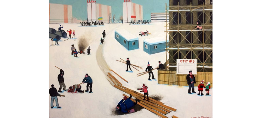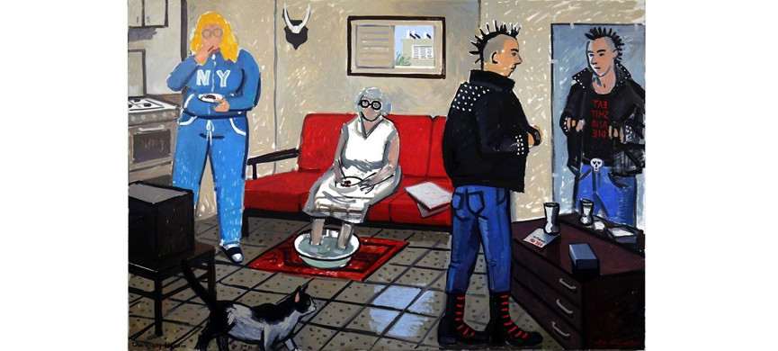 – Конкретно такого я не видела, это гротеск, но мне доводилось слышать про подобные вещи. Я бы сказала, что мои картины делятся 50 на 50. Половину комических моментов мне довелось наблюдать самой, а половина как бы витала в воздухе. Вот, например, вопросы гиюра, как в этой картине. То, что религиозные евреи приходят домой и заглядывают в кастрюли, всё это было на слуху, но конкретную ситуацию со свиньёй я, конечно же, придумала. Мне вообще свойственно подмечать смешное, характер у меня такой. В любой ситуации, какой бы драматичной или тяжелой она ни была, я всегда найду что-нибудь ироничное. Этот подход роднит меня с Зощенко. Можно сказать, что в «Правде» я такой же художник, как Зощенко писатель.