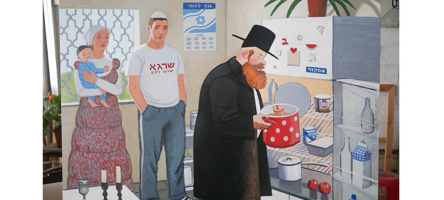 На одной из твоих картин запечатлена сцена, как раввин находит голову свиньи в холодильнике молодой семьи из СССР, изо всех сил пытающейся пройти гиюр. К чему ты это?