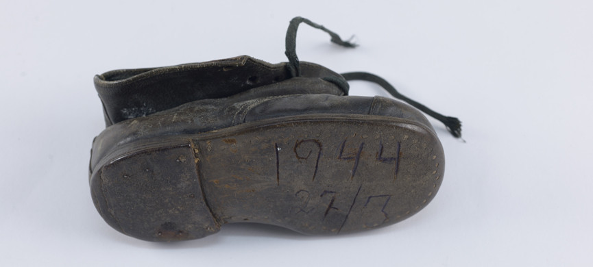 Детский ботинок Хинды Коэн. Коллекция артефактов, Яд ва-Шем. Предоставлено Пниной Элиаху, Гиват-Шмуэль, Израиль.