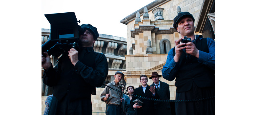 Илья Хржановский (в центре) на съёмочной площадке фильма «Дау»