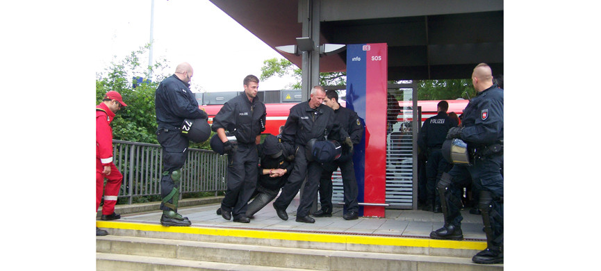 – Почти сразу в 2006 году горожане создали антифашистский комитет и стали развешивать повсюду плакаты «Бад-Нендорф – цветной». На время приезда неонацистов в город они собирались вместе – евангелисты и католики, евреи и мусульмане – и молились за спасение города. После совместного богослужения жители города – вместе с антифашистами со всей страны – шли по центральным улицам в единой колонне. Каждый год горожане также пытались блокировать дорогу, по которой должны были двигаться неонацисты. Люди просто садились не землю, сковывали себя велосипедами, противоугонными замками и отказывались уходить даже под угрозой административных наказаний. Полиция тратила огромное количество времени и ресурсов для расчистки дороги для неонацистов. Протестующих антифашистов забирали в отделения, на кого-то даже заводили уголовные дела. Параллельно, конечно, шла и легитимная борьба – члены антифашистcкого комитета заваливали местные суды требованиями запретить неонацистские марши.