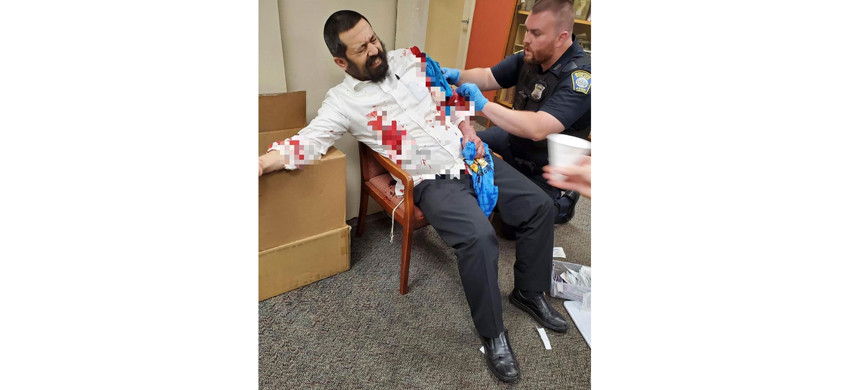 Дальше все происходило очень быстро. Я бежал, пытаясь увести террориста как можно дальше от нашей школы при синагоге, где я преподаю иудаизм. Почувствовав, что он меня настигает, развернулся и начал борьбу. На меня посыпались десятки ударов ножом. Я защищался, выставив вперед левую руку, которая теперь вся в порезах. Несколько раз террорист ударил меня ножом в ребра и в живот. Но чудесным образом эти раны оказались неглубокими. В конце концов мне удалось его оттолкнуть. Я побежал в сторону дороги, надеясь привлечь внимание прохожих или водителей. Люди нас видели, но боялись подойти. Выбежав на главную дорогу, я остановился. Террорист догнал меня и снова попытался ударить ножом: я видел дикую ярость в его глазах. Вокруг скопилось множество машин. Никто не вышел помочь, но я понял, что люди звонят в полицию и мне просто нужно продержаться еще какое-то время. Видимо, это понял и нападавший, решив убежать с места преступления. Тогда я вернулся в синагогу, где мне и вызвали скорую помощь, поскольку я истекал кровью. Нападавший все время пытался попасть мне ножом в сердце, большинство ударов, которые я получил, были нанесены мне с левой стороны. Это чудо, что ему удалось попасть в меня «всего» восемь раз – и эти раны были относительно легкие. Раны понемногу заживают, мне еще тяжело поднимать вещи левой рукой, но процесс выздоровления идет.