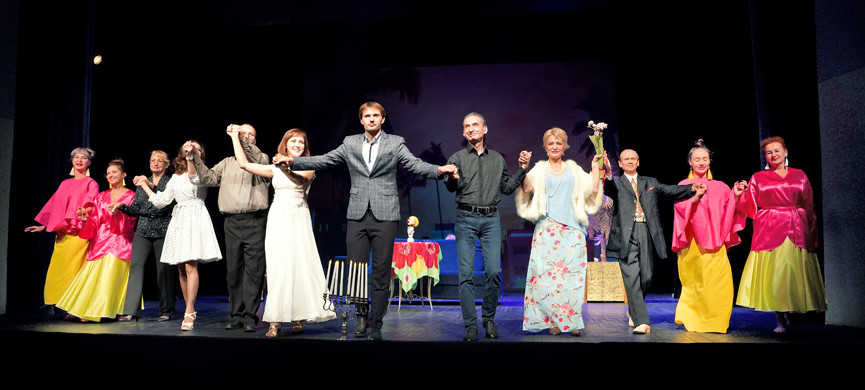 – Коллективом, конечно. Ведь опять-таки, в отличие от государственного театра, наши актеры работают без зарплаты. На полном энтузиазме. Почти весь доход от продажи билетов идет на костюмы, декорации, звуковые дорожки к спектаклям и прочее. Каждый актер, устраиваясь в труппу, знал об этом. Кого это смущало – сразу уходил. Остались лишь те, кто хочет играть именно здесь, кто искренне любит еврейский театр. Всем приходится подрабатывать в других местах. Это нелегко, и мы надеемся, что со временем их вклад будет вознагражден. Но на это никто не сетует. В труппе театра 30 актеров. Все они – гордость театра. Ведь без взаимодействия внутри коллектива не получилось бы достичь ни одного из сегодняшних успехов, среди которых и сам факт существования театра на протяжении десяти лет. Юбилейный сезон мы, кстати, откроем на сцене театра имени Евгения Вахтангова. Гастроли состоятся при поддержке государственной программы «Большие гастроли».