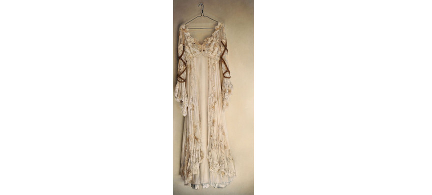 Да и первый мой брак не был несчастливым. После развода я мыла подъезды, убирала в чужих домах и гладила за деньги белье, чтобы прокормить в одиночку троих детей и заработать себе на получение художественного образования. Но с тех пор я рисую своё первое свадебное платье каждые несколько лет. Сначала я изобразила платье на вешалке. Затем я «надела» его и нарисовала рядом болтающееся на веревке висельника обручальное кольцо. На следующем полотне платье было уже обмотано бинтами.