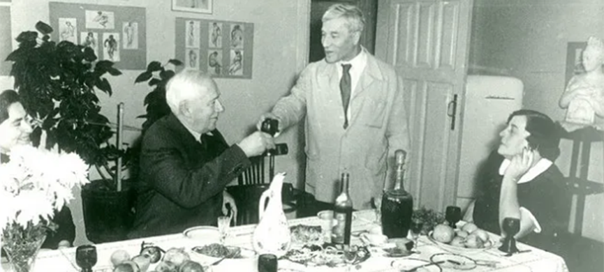 Любил принимать гостей, праздновать семейные торжества в Переделкине. Известна фотография, где счастливый Пастернак держит рюмку, а за обеденным столом – его вторая жена Зинаида Николаевна, Чуковский, Нина Табидзе. Они отмечают присуждение ему Нобелевской премии – это ещё до того момента, когда началась травля. Кстати, выпить он любил. Коньяку. А ещё – блистать в общении с молодыми красивыми женщинами.