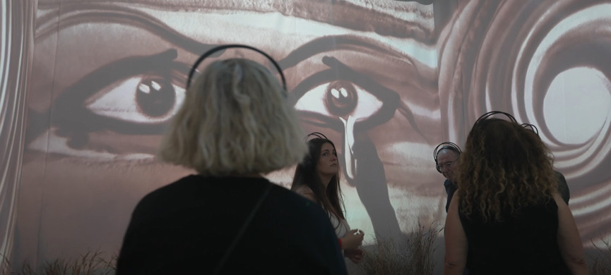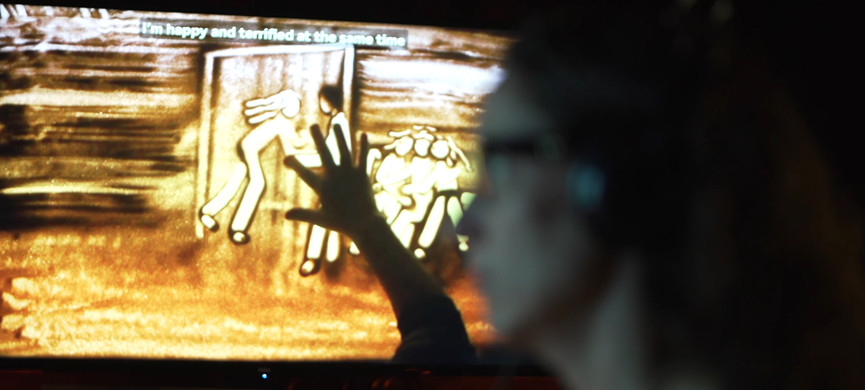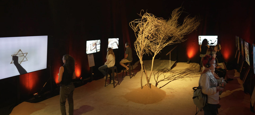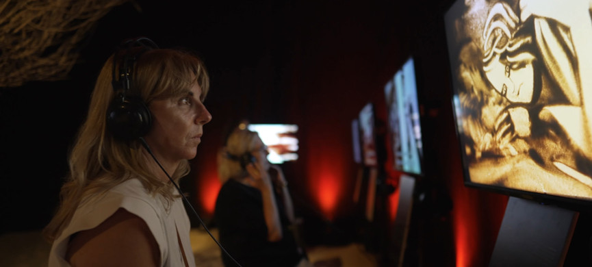 Их свидетельства зачитывают профессиональные актрисы – на иврите и на английском языке. Иллюстрация к их словам – песочная анимация, sand-art. Эти иллюстрации призрачны и прозрачны, дунешь – и их нет. Песок рассыпался, улетел. Но цель этого проекта обратная – не дать исчезнуть историям 7 октября, сохранить их для будущего, а еще показать в других странах: вскоре выставка состоится в Австралии и США.