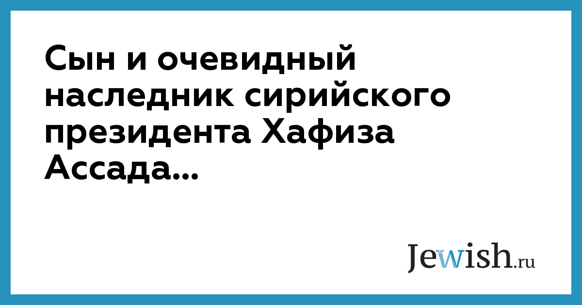 Сын и очевидный наследник сирийского президента Хафиза Ассада...