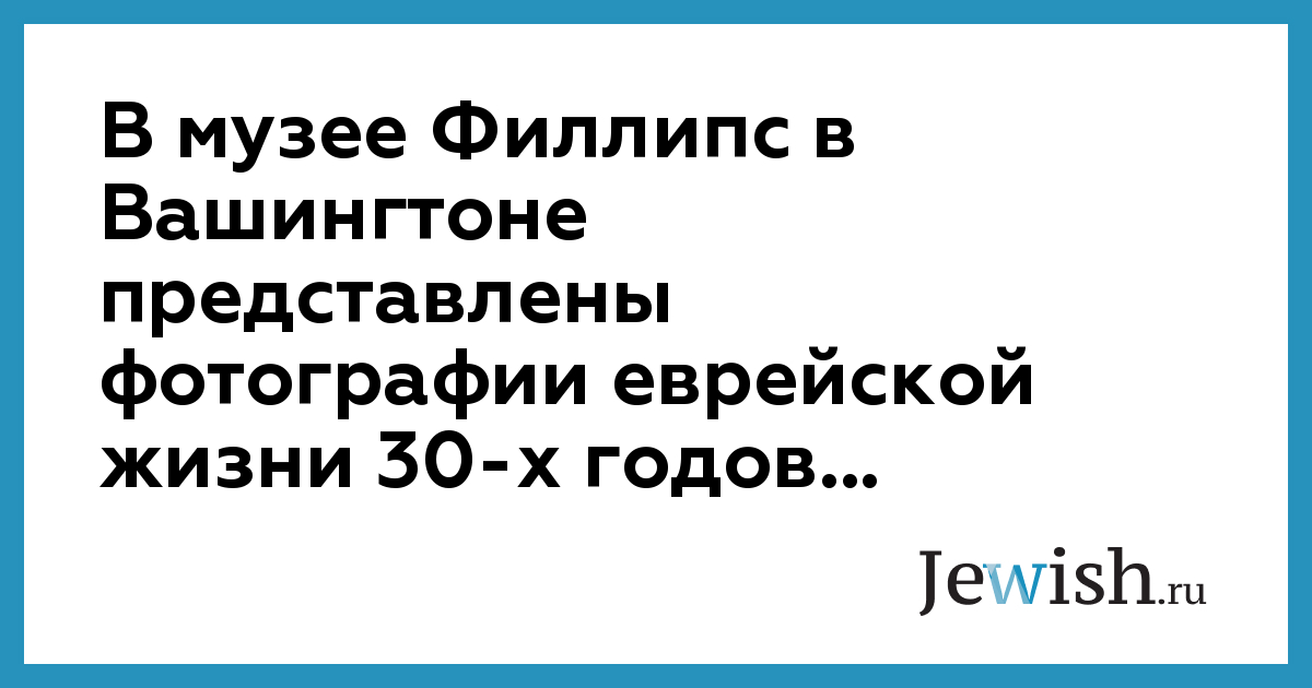 В музее Филлипс в Вашингтоне представлены фотографии еврейской жизни 30-х годов...