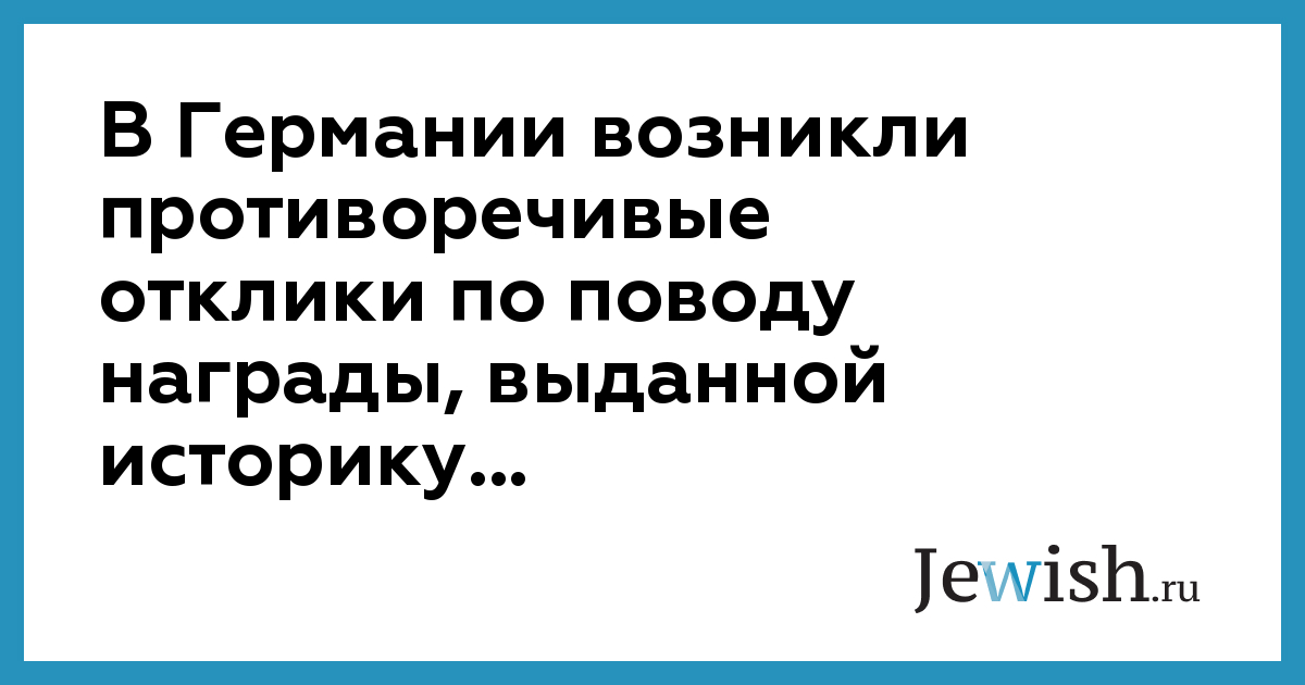 В Германии возникли противоречивые отклики по поводу награды, выданной историку...