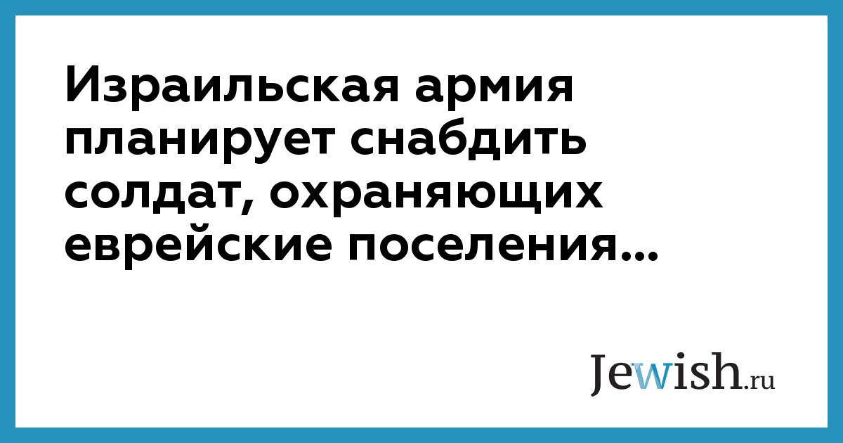Израильская армия планирует снабдить солдат, охраняющих еврейские поселения...