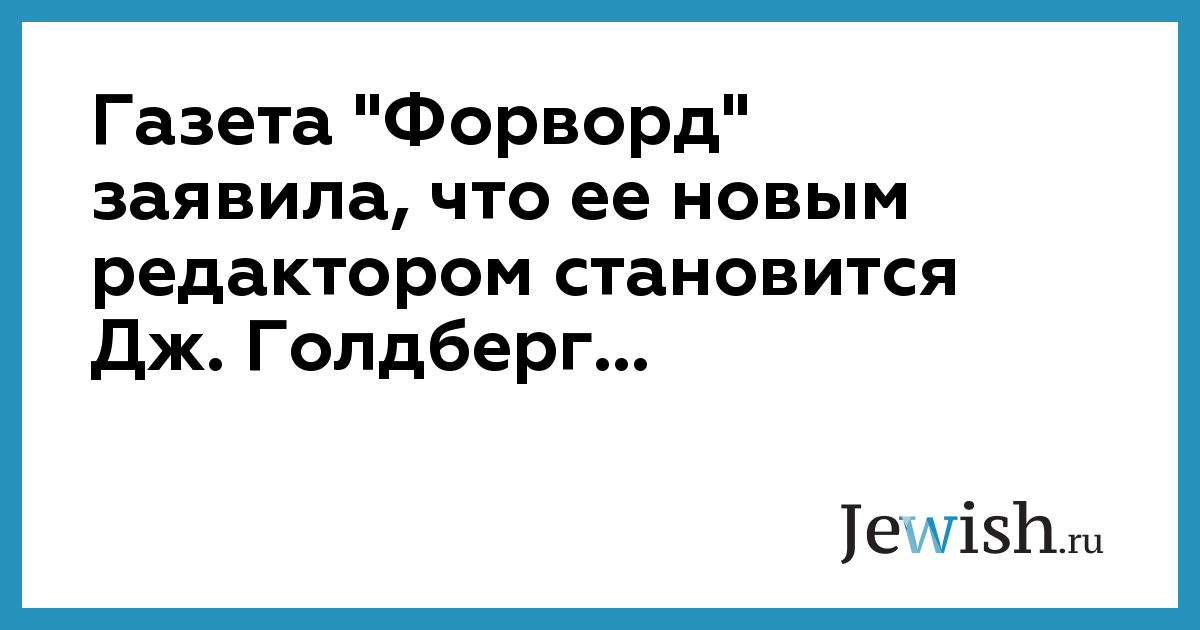 Газета "Форворд" заявила, что ее новым редактором становится Дж. Голдберг...