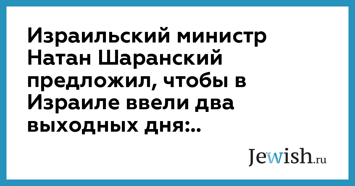 Израильский министр Натан Шаранский предложил, чтобы в Израиле ввели два выходных дня:..