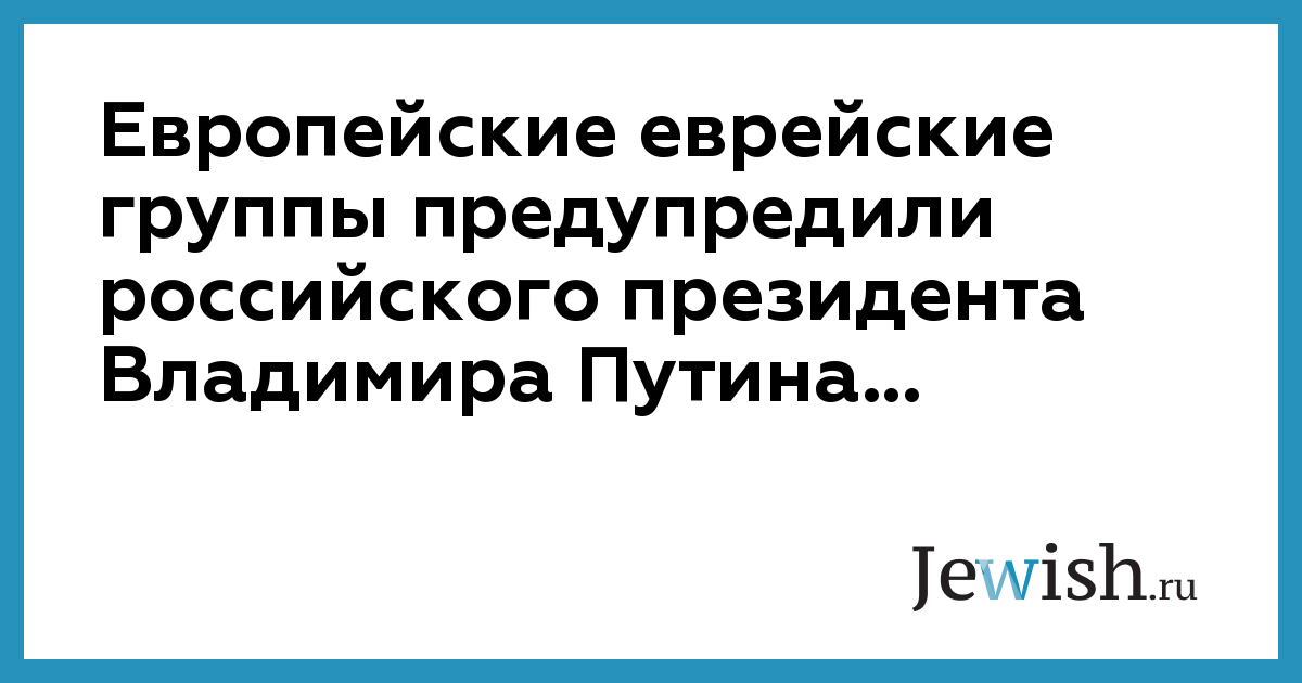 Европейские еврейские группы предупредили российского президента Владимира Путина...