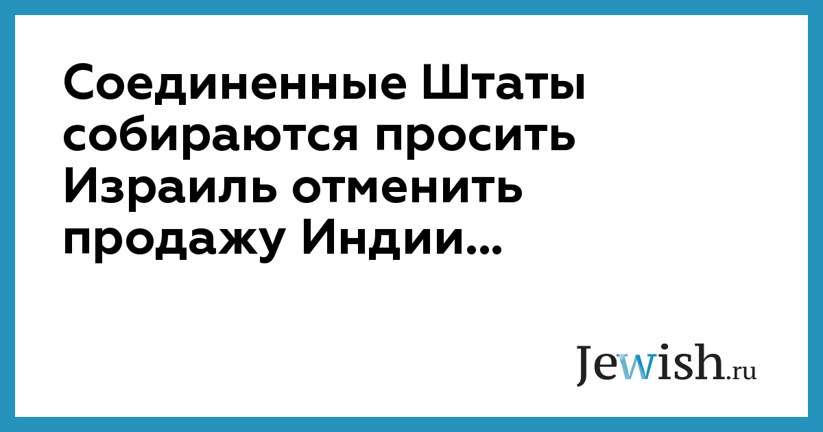 Соединенные Штаты собираются просить Израиль отменить продажу Индии...