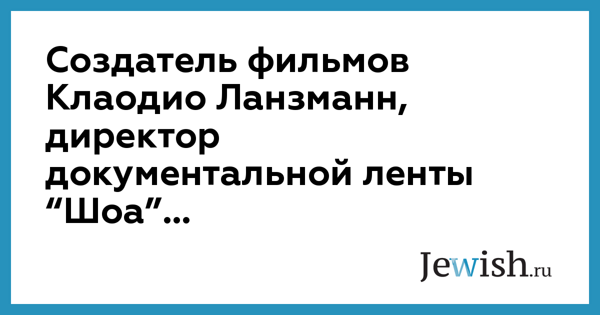 Создатель фильмов Клаодио Ланзманн, директор документальной ленты “Шоа”...