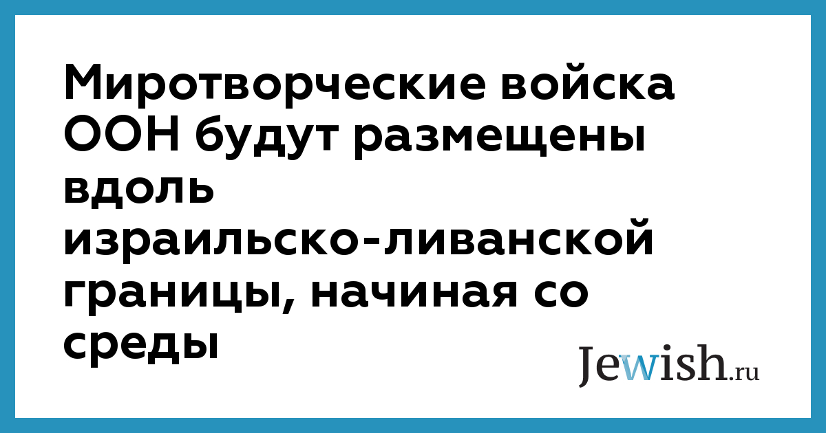 Миротворческие войска ООН будут размещены вдоль израильско-ливанской границы, начиная со среды