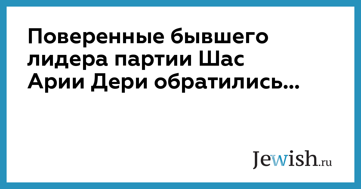 Поверенные бывшего лидера партии Шас Арии Дери обратились...