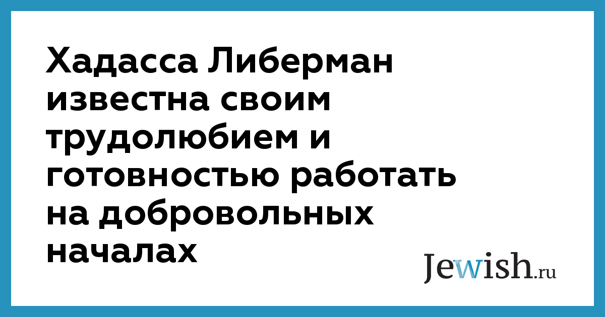 Хадасса Либерман известна своим трудолюбием и готовностью работать на добровольных началах