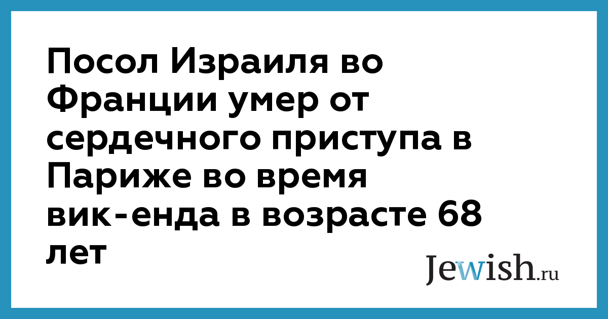 Посол Израиля во Франции умер от сердечного приступа в Париже во время вик-енда в возрасте 68 лет