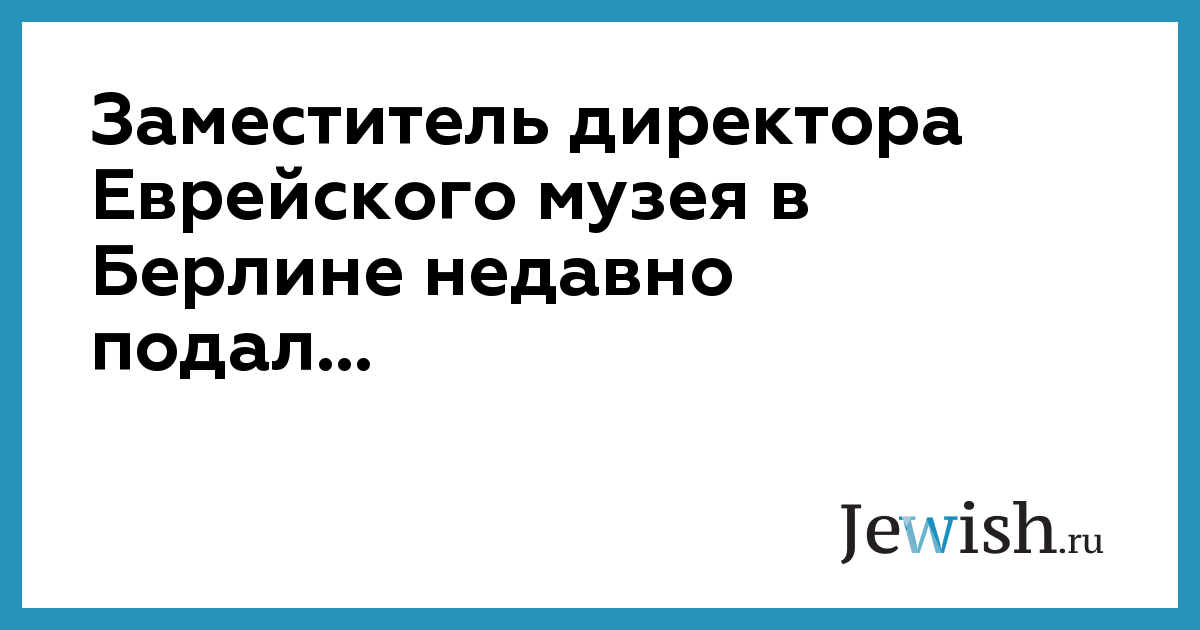 Заместитель директора Еврейского музея в Берлине недавно подал...