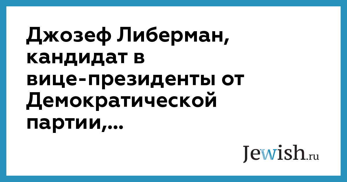Джозеф Либерман, кандидат в вице-президенты от Демократической партии,...